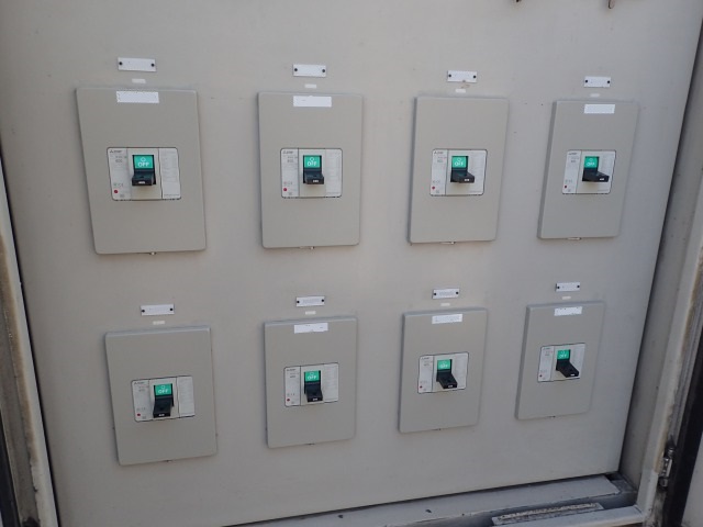 今回のご依頼は、屋外にあるキュービクルの低圧ブレーカ8回路分の更新作業です。停電の確認、旧ブレーカの絶縁状態をしっかり測定してから作業を開始します。
